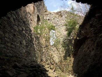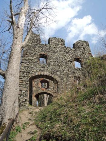 Rozsáhlá zřícenina gotického hradu Andělská Hora (Engelsburg) z druhé poloviny 14. století leží na skalním ostrohu nad stejnojmennou vesnicí. Toto místo navštívil mimo jiné i německý básník Johann Wolfgang Goethe.