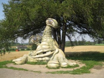 Spíše surrealistický Hamroň byl vytvořen na podnět obce Hamry. Podle autora má znázorňovat křížence mezi hlemýžďem a žábou. Socha vítá všechny návštěvníky Hamrů, kteří přicházejí od Žďáru.