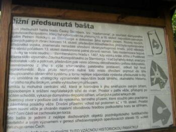 „Jižní předsunutá bašta, tzv. hladomorna, je součástí důmyslného opevňovacího systému, který byl vybudování na přelomu 15. a 16. století. …. Tato bašta je jedním z nejlépe dochovaných objektů pozdněgotického fortifikačního stavitelství…. (Zdroj: informační tabule u bašty)“.