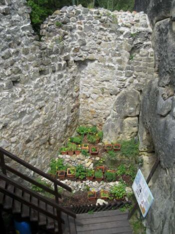 Parkování pod hradem, výstup méně udržovanou cestou.