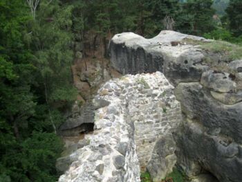 Kdysi mohutný hrad byl postaven ve 2. polovině 13. století. Už v roce 1514 byl zmiňován jako pustý. Za třicetiletéleté války zde v dutinách skal budovalo příbytky prchající obyvatelstvo. Z hradu se dochovaly některé zdi, skalní tesané světničky a chodby.
