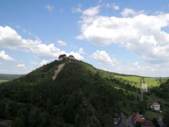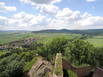 Zřícenina hradu Točník se tyčí na horním konci skalnatého žebra Zámecké hory, na jehož dolním zakončení stojí hrad Žebrák. Hrady se nacházejí nad obcí Točník, nedaleko města Žebrák. Vystavěním hradu Točníka v tak těsné blízkosti dolního hradu Žebrák vzniklo v Čechách nejmajestátnější a dodnes nejzachovalejší souhradí.
