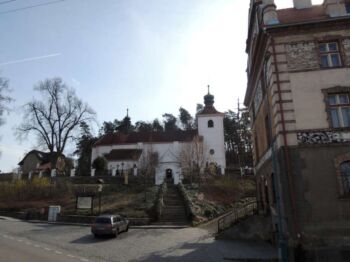 Vedle kostela stojí novorenesanční dům U Micků se sgrafity od malíře K. Klusáčka.