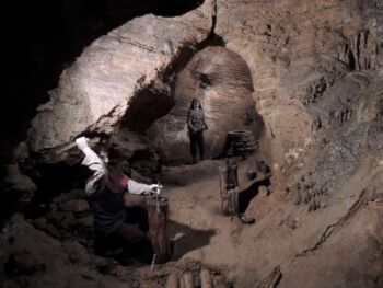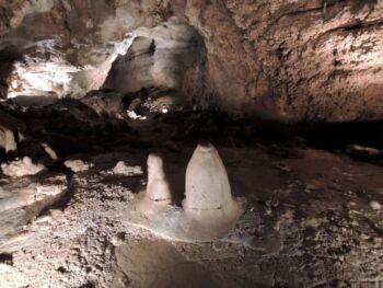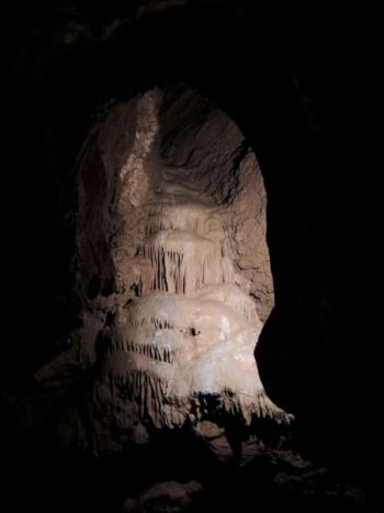 Nejdelší jeskynní systém na území Čech s bohatou krápníkovou výzdobou byl objeven při odstřelu v místním lomu v roce 1950, pro veřejnost částečně zpřístupněn roku 1959.