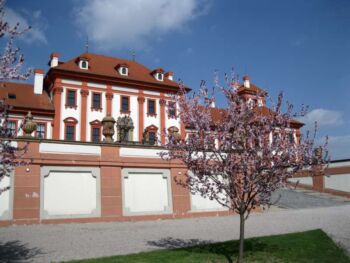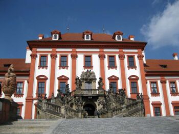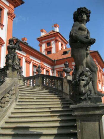 Barokní zámek postavený v 17. století se nachází v nynější městské části Prahy 7 – Troja. Dominantou zámku je velkolepé dvojramenné schodiště vyzdobené sochami vedoucí přímo do rozsáhlého francouzského parku. V něm se nachází mnoho okrasných a ovocných stromů, přírodní bludiště, fontány a zdobí ho i výrazné terakotové vázy a další ozdobné skulptury.