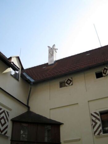 Zámek je umístěn na skále, která vyčnívá nad hladinou zámeckého rybníku. Přístupová cesta k zámku vede přes kamenný most.